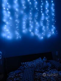 Luci a tenda led compresa USB 3 mt x 2 mt con 200 led luce fredda 8 modalità di movimento delle luci con timer telecomando (senza pila) causa doppio acquisto