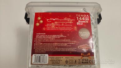 Luci di Natale a tenda, 144 led, per interno ed esterno, colori bianco e blu con vari giochi di luce.