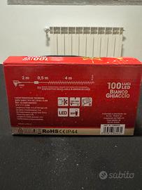 Set di luci natalizie a LED. - 100 luci LED. - Colore bianco ghiaccio. - 8 giochi di luce selezionabili.