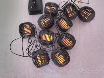Vendo luci solari ornamentali da esterno usate poco funzionanti e in buone condizioni non ci sono imperfezioni. La luce delle lampadine è di color arancione.