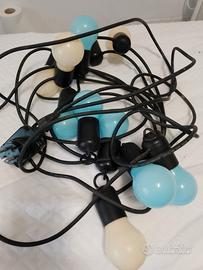 Luci per esterno azzurre e avorio usate pochissimo, diffondono una romantica luce soffusa