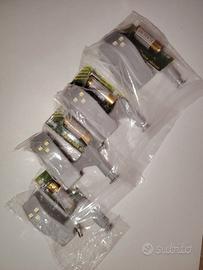 Set di 4 Luci led da fissare alle cerniere dei mobili. Grazie alla molla al suo interno si accede la luce semplicemente aprendo lo sportello. Funziona con pile 23A a 12V incluse