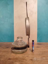 Pezzo di grande rarità e fascino: lume a olio (o petrolio) antico da tavolo, con un originale riflettore in metallo montato sulla base.