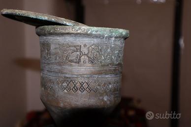 Antico lume a petrolio in rame - 1900 circa - Persiano - Lavorato a mano con incisioni. Oggetto da collezione e investimento.