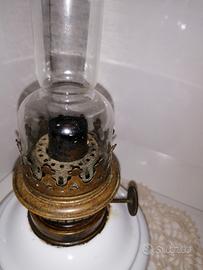 lume a petrolio vintage, coppetta in ceramica bianca