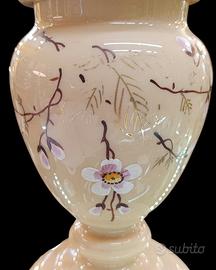 Lume a petrolio primi 900' in vetro opalino, successivamente elettrificato. Altezza 50cm. Info 3495611398
