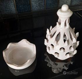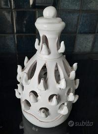 Lume a pigna traforato in ceramica bianca. Dimensioni h cm.19x12