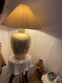 Lume con base in ottone martellato, peralume in stoffa beige, attacco lampada edison. Altezza. 64cm diametro58. Ottime condizzioni. Come da foto.