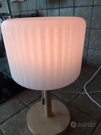 ricaricabile, due luminosità di bianco e funzione RGB vari colori. base in legno .