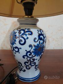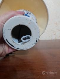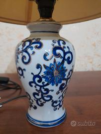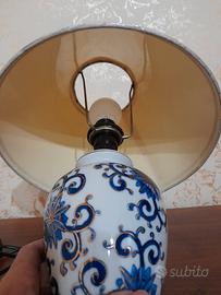 lume da tavola anni 60 /70 in porcellana con desainer floreali di colore blu ed oro con paralume panna ed oro plastificato misure altezza 36 cm con tutto il paralume funzionante e integro