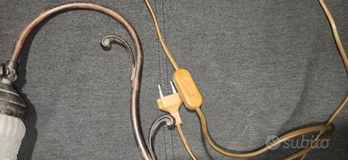 lume in ottone con campana in vetro satinato, attacco per lampada E17 cavo alimentazione colore oro con spina e interruttore perfettamente funzionante