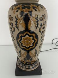Lume con base in ceramica. Funzionante. Sul retro il paralume presenta due macchie, come visibile in foto.