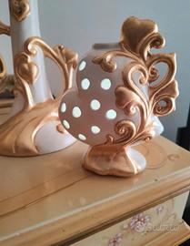 Set di tre lumi oro e avorio di Via Veneto. Due lumi piccoli con luce led e un lume a forma di pomo grande con lampadina. Condizioni perfette