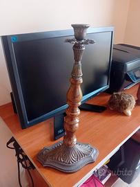portacandela antico in bronzo e legno antico