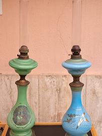 Lampade a petrolio vintage, in ottimo stato, non presentano "danni", decorativi per ambienti vintage o altro. Si vendono a coppia o anche singolarmente. Preferirei che il ritiro sia fatto "brevi manu" onde evitare la spedizione che potrebbe creare eventuali danni. Le lampade sono da lavare, i disegni o altro sono come nuovi. Di certo sono lampade molto decorative e delicate nel loro genere, sono degli anni "60. Prezzo trattabile a secondo della richiesta.
