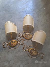 Vendo lumi da parete, stile classico, con capannine color panna e base con disegno di dame....Ne possiedo 3 monolampada e 1 con doppia lampada,vendibili anche singolarmente.