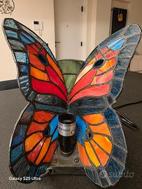 BELLISSIMA COPPIA DI LUMI FARFALLE IN VETRO TIFFANY, PERFETTAMENTE FUNZIONANTI E IDEALI PER COMODININI PER CAMERA DA KETTO O CUCINA IN STILE CLASSICA E MODERNA. NO CAMBIO NE AFFARISTI