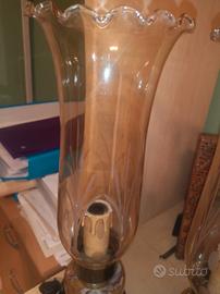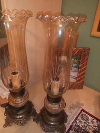 Vendo lumi con base in ottone e onice, paralumi in vetro lavorato, anni 70 perfettamente integri e funzionanti per abbellire un angolo di casa, un mobile antico.