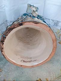 Lumiera siciliana raffigurante dama in costume d'epoca, interamente realizzata e modellata a mano nel laboratorio artistico della ceramica Sofia di Caltagirone.