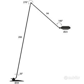 Lampada da terra dalla linea minimale, ma con elevato potere illuminante. Elle offre sia luce diretta sia luce diffusa. Elementi distintivi del suo design sono il braccio snodato, il riflettore regolabile ed il frangiluce. Identica nelle forme e nelle dimensioni alla storica versione alogena, Elle LED si rinnova con un flusso luminoso superiore e un consumo inferiore ai 50W. L'adozione della tecnologia LED TRI-R (di Toshiba Materials Co.,LTD) assicura un'altissima resa cromatica (CRI >97). Elle LED ha una doppia emissione luminosa dimmerabile: diretta da 20W con griglia antiabbagliamento e indiretta da 25W. Corpo in alluminio e acciaio, dimmer a pedale sul cavo di alimentazione.
