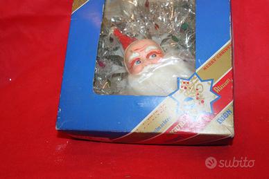 Luminare Vintage Corona Babbo Natale luci pisellino, nuova anni 80. Bellissima corona con luci a pisellino, Natalizia con viso di Babbo Natale che si illumina, e' un fondo di magazzino nuovo, aperto solo per le prove in foto, Condizioni come da foto, visto e piaciuto.