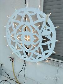 LUMINARIA D'ARREDO "ROSONE PUGLIESE"...IN LEGNO..DIAMETRO 1MT CIRCA. prodotto fatto interamente a mano ...completo di lampadine(colori a scelta dell acquirente)...trasformatore 12v ,cablaggio completo ..adatto sia per uso interno che esterno..(non teme l 'acqua)...personalizzabile