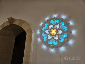 Luminaria salentina, rosone di diametro 70 cm illuminata con lampade a led a basso consumo, ottima idea regalo. Viene venduta con alimentatore e interruttore su richiesta è preferibile consegnare a mano date le misure elevate del rosone. possibilità di cambiare la colorazione delle lampade a vostra scelta