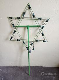 vendo luminaria alimentazione a 220v per esterni a 18 lampade + 3 di scorta tipo e14 mignon 5w 14v con asta di sostegno colore verde:altezza totale 140cm la stella misura 70cm di larghezza e 80cm da punta a punta no spedizione