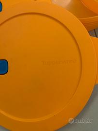 Lunch box Tupperware con divisori non rimovibili e valvola sottovuoto. Colore arancione. Buone condizioni. Possibilità di venderli separatamente.