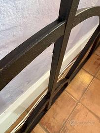 Tecnica artigianale autentica: realizzata interamente senza saldature, con giunzioni esclusivamente a ribattitura del ferro e chiodi forgiati a caldo. Sezione del ferro piatto/quadrato, tipico della lavorazione manuale di bottega.