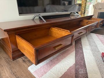 Mobile porta TV in legno marrone scuro. In perfette condizioni. L'ho preso dai precedenti proprietari. Ne ho comprato uno nuovo che si abbina meglio ai nuovi mobili.
