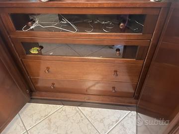 Camera da letto, in perfette condizioni, intersecazioni di vari tipi di legno. L’armadio presenta sei ante, dove nella parte centrale disponiamo di cassettiera interna, in piu’, in alto appendi cappotti abbassabile tramite leva, per portarli in alto. Due comodini e cassettiera, tutto in perfette condizioni composti con lo stesso legno molto particolare. Per info prezzi contattare in privato, trattabile. 3278451637