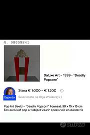 Vendo magnifica opera d’arte (genere pop art), 1 di 25, firmata DaLuxe Art intitolata “Deadly Popcorn”, con valutazione compresa tra i 1000 e i 1200 euro (da parte di un famoso sito di aste on line). L’opera è perfetta, non ha alcun difetto ed è accompagnata da certificato di autenticità.