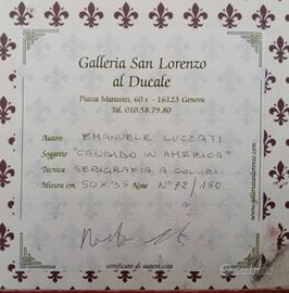 Serigrafia a colori 50x35 numerata corredata di certificato di autenticità, cornice inclusa. Condizioni perfette, i piccoli segni in alto sulla cornive sono riflessi di luce nella fotografia