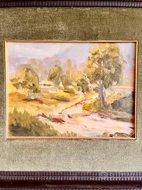 Coppia di quadri raffiguranti il bosco con bellissima cornice in legno. Misure: con baita 67x76 con Bosco 80x70