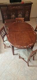 Tavolo allungabile in arte povere con disegni Settecento Florentino con 4 sedie