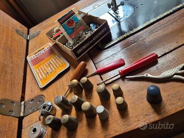 Vendo per mancato utilizzo macchina da cucire marca Singer a pedale completa di mobile in legno,serie di vecchi ditali misure varie,aghi Singer,piccoli attrezzi per la manutenzione. Ritiro a carico dell'acquirente