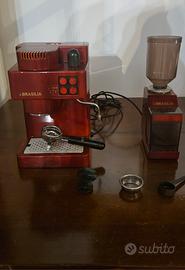 Macchina da caffè espresso vintage della marca Brasilia, probabilmente il modello Lady. Dispositivo compatto, caratterizzato da un design geometrico anni '80/'90. Dotata di una singola caldaia per l'erogazione del caffè e la produzione di vapore. Realizzata con scocche in metallo verniciato, di colore rosso. Macchina semi-automatica ideale per la preparazione di caffè espresso a casa. Macinacaffè compreso nel prezzo. Effettuo la vendita e la consegna a mano a Palermo, oppure valuto bonifico e spedizione a parte.