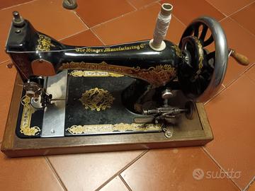 vendo vecchia macchina da cucire Singer, manuale, anno 1930, perfettamente funzionante, con tutti i suoi fregi dorati intatti