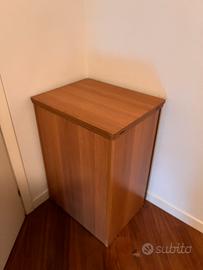 Mobile in legno vintage con macchina da cucire Singer integrata, modello anni ‘80, perfettamente richiudibile e salvaspazio. Il mobile, dal design essenziale e solido, custodisce una macchina Singer originale perfettamente funzionante (da testare all’acquisto), ideale sia per utilizzo che come complemento d’arredo dal gusto retrò. Il mobile offre un sistema “a scomparsa” molto pratico: la macchina si solleva facilmente tramite il meccanismo dedicato e la chiusura consente di mantenere tutto in ordine e protetto dalla polvere. L’oggetto, pur mostrando lievi segni del tempo, è in buone condizioni e mantiene tutto il fascino degli arredi funzionali del passato. Misure dettagliate disponibili su richiesta.