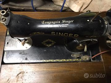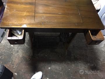 Vecchia macchina da cucire sigier a scomparsa con mobiletto in legno