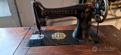 Macchina da cucire Singer, primi anni del novecento, con inciso il numero di serie. A scomparsa diventa un comodo tavolino, facilmente apribile, risulta dotata di ripiano. I cassetti contengono ancora il libretto di istruzioni e altro.