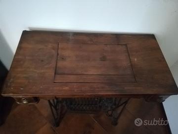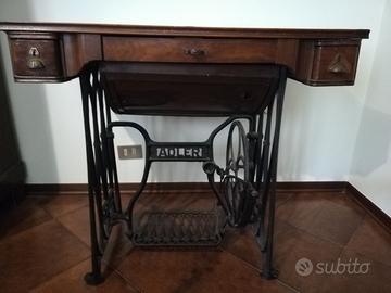 Macchina da cucire antica, con mobile in legno molto ben tenuto. La testa è di marca Haid & Neu, mentre il basamento in ghisa è di marca tedesca Adler, chiusura a scomparsa, movimento a pedale, la cinghia in cuoio è spezzata.