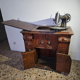 Macchina da cucire Singer corredata di mobile in legno intarsiato. Questo è da considerarsi un pezzo molto raro e sopratutto originale, adatto anche come arredamento