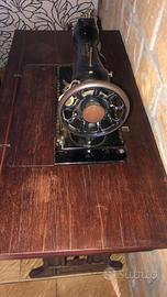 Vendo macchina da cucire Singer perfettamente conservata e funzionante. Completa di mobile originale in legno con pedale a manovella, decorazioni dorate ben conservate. Ottima per appassionati di vintage, collezionisti o come elemento d’arredo d’epoca. Prezzo trattabile.