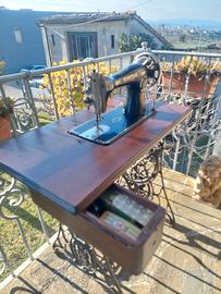 Macchina da Cucire Singer d'Epoca anno 1942 completamente ristrutturata con piano in legno e basamento compreso pedale in ghisa La macchina è perfettamente funzionante e viene fornita completa di libretto e di tutti i suoi accessori