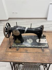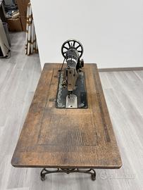 Vendo macchina da cucire d’epoca a pedale, completa di tavolo originale in legno e struttura in ghisa. Ottimo pezzo da collezione o arredamento vintage/industriale.
