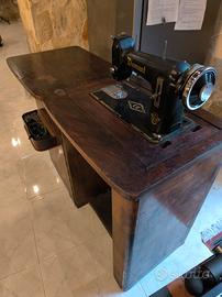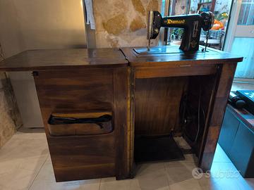 Mobile in legno con macchina da cucire Diamond perfettamente funzionante a pedali. Anni 50