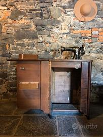 Macchina da cuciire marca Durkopp inserita in mobile rivestito in radica. restaurata e con meccanismo che nasconde la macchina dentro il mobile funzionante.