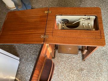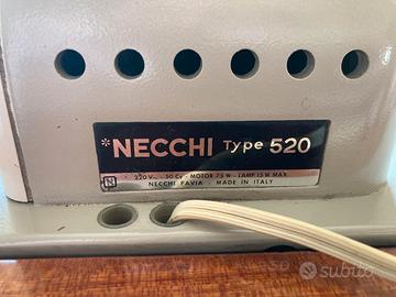 Macchina da cucire marca Necchi, Type 520, Made in Italy, anni '70. Inserita nel suo mobiletto in legno. Manuale, con pedale. Inutilizzata da circa 3 anni.